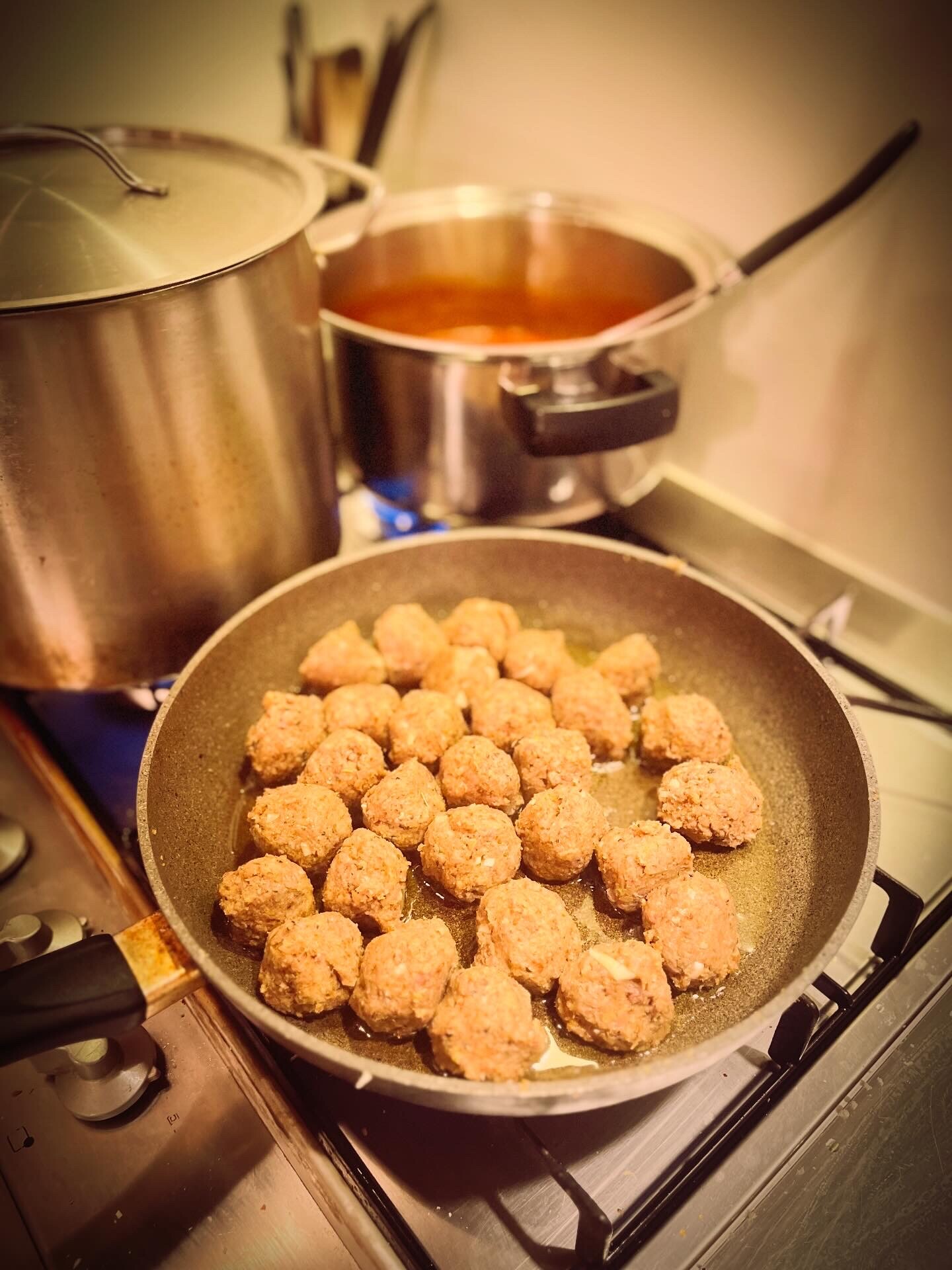 シチリア風肉団子「ポルペッテ」。普通は牛や豚を使い、過去にはイノシシ肉で作って最高に美味しかった。