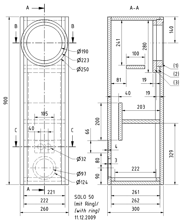 SOLO100は本格的なダブルバスレフで、SOLO50はバスレフにバンドパスフィルターを加えた感じか?