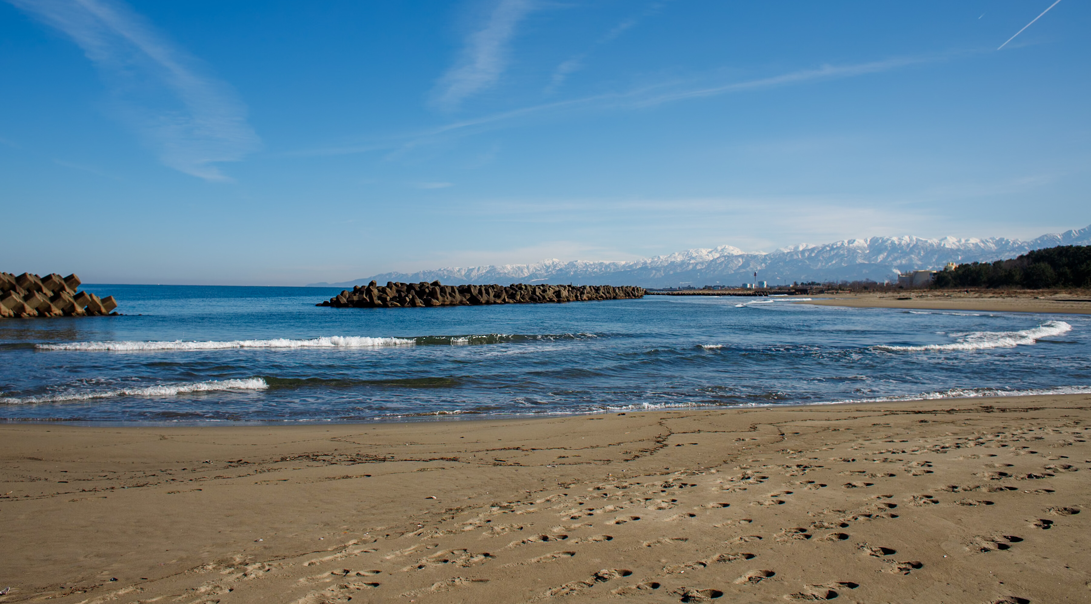 抜けるような青空。穏やかな海。澄んだ北アルプス。