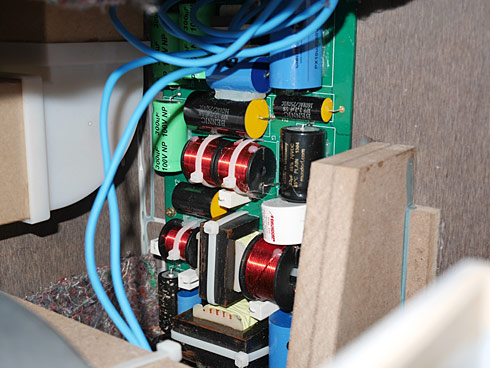 ミッド~ハイは8cmコーン型を使うのも面白そうだ。ローパスは9mHのカットコアコイルで130Hzあたり、インピーダンス補正もしっかり行う。