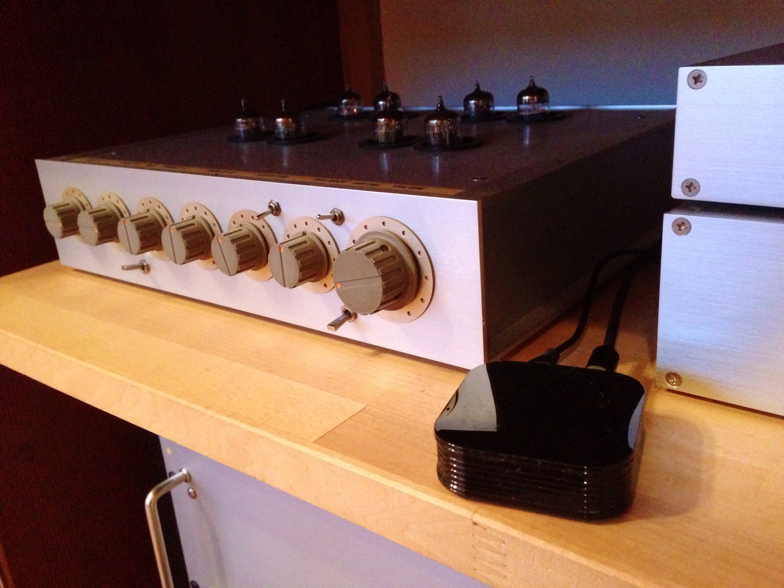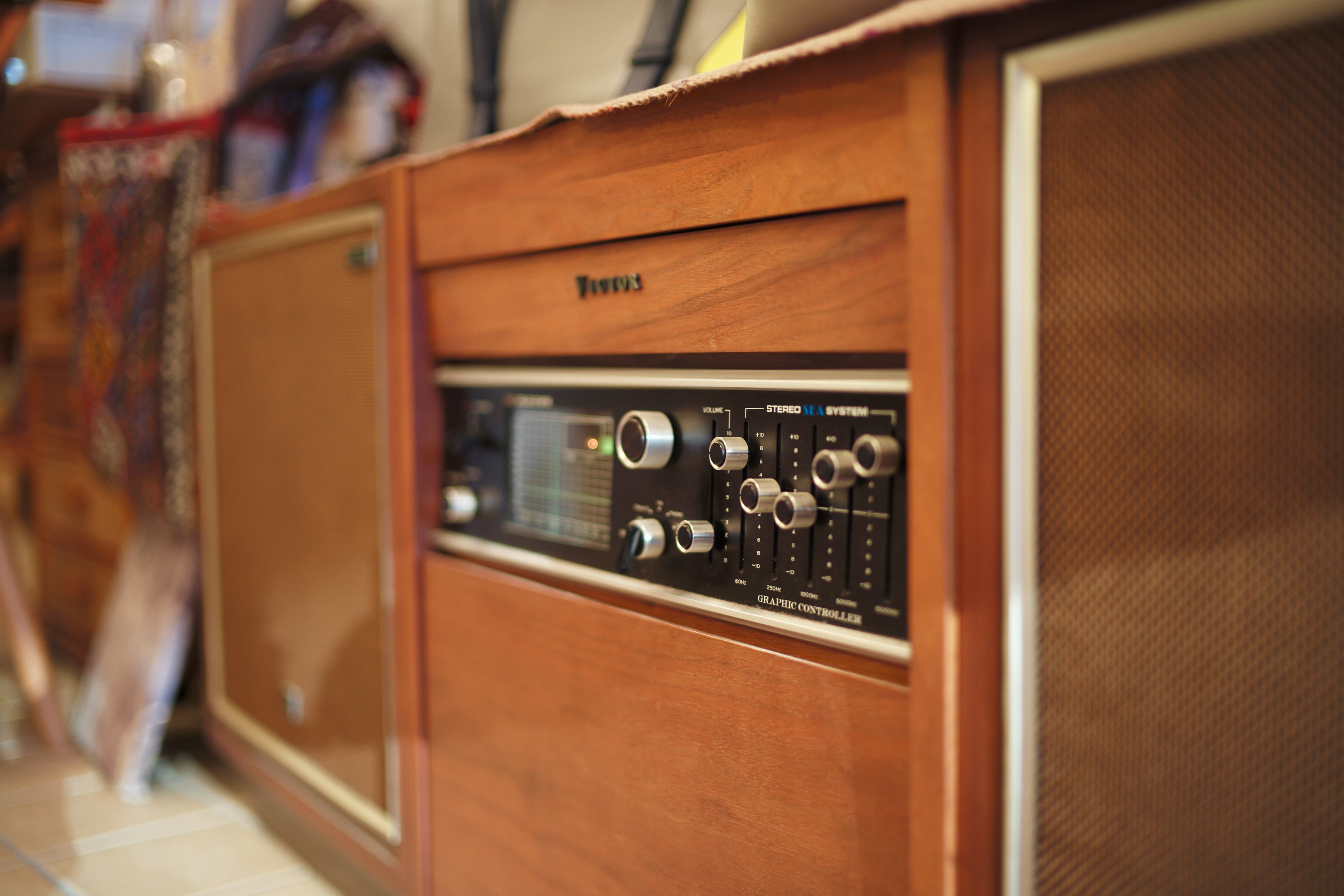 5バンドイコライザやチューナーのアナログ表示も素敵。コントロールパネルのデザインや突板の美しさにも惚れぼれ。現代オーディオが失ったものがここにあると思った。