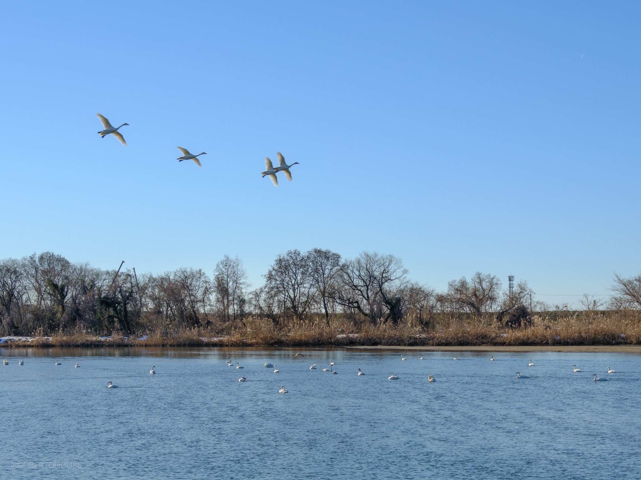 他の水鳥と比べて圧倒的に大きく、鳴き声は低く太く力強く迫力があり、飛翔はゆったりして飛行機のようで、感動しました。